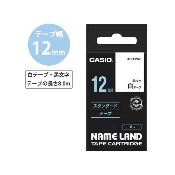 カシオ ネームランド スタンダードテープ 8m 12mm幅(白テープ/黒文字)