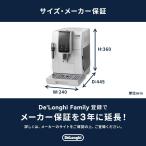 - ■ご自宅で挽きたて淹れたての本格派レギュラーコーヒーを楽しめる!一杯淹れるごとに自動で丁寧に「豆を挽く」、「絶妙にタンピングする」、「最適な圧力で抽出する」を行い、本場イタリアの本格派レギュラーコーヒーの味を最大限に実現するデロンギの全自動コーヒーマシン。■簡単操作で1杯ずつ豆から挽きたての本格コーヒーが楽しめる!日本語対応液晶ディスプレイを搭載し、見やすいバックライトアイコンを備えたソフトタッチパネルを採用した、わかりやすく簡単な操作性。コーヒーの濃さ(豆の量)やコーヒーの量(抽出量)、抽出温度の設定まで、お好みのコーヒーにカスタマイズ。ボタンを押すだけでバリスタが淹れたような挽きたての本格レギュラーコーヒーを簡単にご自宅でお楽しみいただけます。(コーヒーメニュー:エスプレッソ、エスプレッソLARGE、ロングコーヒー、カフェ・ジャポーネ、ドッピオ+、スペシャルティ)■「カフェ・ジャポーネ」機能搭載。日本人好みの深蒸しレギュラーコーヒーエスプレッソのうまみとドリップのすっきりした後味を融合した「カフェ・ジャポーネ」機能。豆をハンドドリップのように蒸らしながら抽出することで芳醇な香りとうまみを凝縮した一杯をつくりあげました。■「スペシャルティ」機能搭載。浅煎りやスペシャルティコーヒーと好相性通常より多めの豆量を使いダイレクトに抽出するので、すっきりした繊細な味わいの飲み口の良さが特徴。コーヒーのTerroirをストレートに引き出すので、浅煎り豆やスペシャルティコーヒーとの相性も良い。■フロス調整つまみ付き二重構造高性能ミルクフロッサー備え付けのミルクフロッサーを使えば、カフェ顔負けのメニューバリエーションをご自宅でお楽しみいただけます。フロス調整つまみつきフロッサーで、誰もがコツ要らずでキメ細かいなめらかなフォームミルクが作れます。■着脱可能な抽出ユニット電子制御によるタンピング圧コントロールシステム搭載により、いつでも本格派レギュラーコーヒーの味を再現します。抽出ユニットは取り外しができお手入れも簡単です。■コーン式コーヒーグラインダー搭載(ミル)■コーヒー豆とコーヒー粉の両方で抽出ができます。いつものコーヒー豆とは違う味を楽しみたい時に使用できます。■節電機能つきお好みに合わせて、オートオフまでの時間を設定いただいたり、節電機能をご利用いただくことで、コーヒー抽出後に自動的にボイラーがオフになるので、無駄な電力消費を抑えてくれます。 【ECAM35035W】※本商品が対象となるクーポンは、その期間終了後、同一内容でのクーポンが継続発行される場合がございます。