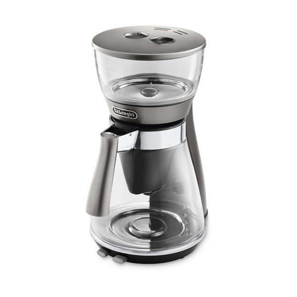 - デロンギ ICM17270J クレシドラ ドリップコーヒーメーカー●ECBC認証モード高精細な抽出テクノロジーにより、コーヒーの最適な味を引き出し、ヨーロッパ コーヒー抽出研究所(ECBC)の認証を取得。抽出温度(92-96℃)や抽出時間の精密なコントロールにより、パーフェクトなコーヒーを実現します。●アイスコーヒーモードECBC(ヨーロッパ コーヒー抽出研究所)認証設計に基づいて丁寧に抽出する独自の「アイスコーヒーモード」。蒸らしながら濃いめに抽出したコーヒーを氷で急冷することで、香り高くコクのあるアイスコーヒーが淹れられます。●プアオーバーモードハンドドリップをマシンで再現した蒸らし抽出。特別に設計された形状の給湯口と抽出制御により、ワンタッチで香り高く深みのあるコーヒーが淹れられます。●砂時計のような独創的なデザイン上部の水タンクにて湯沸かしし直接コーヒー粉に注ぐストレート構造は、コーヒーを淹れる工程を、スタイリングコンセプトである砂時計で時を刻むかのように魅せる演出として表現しています。●保温プレート保温プレートでコーヒーの温度をしっかり保ちます。抽出完了後40分で自動的に電源OFFにする省エネ設計。●しずく防止機能抽出中にガラスジャグを外すと、抽出が止まる安全設計。●非塩ビプラグ/電源コード仕様●欧州RoHS指令適合●再資源化システム付き【仕様】寸法(mm):幅190×奥行285×高335本体重量:2.5kg(ガラスジャグ含む)電圧・周波数:100V / 50-60Hzコード長:1.8 m消費電力:1200W抽出杯数:2〜10杯最大タンク容量:約1250mL最大ジャグ容量:約1250mL色:シルバー材質:本体、ガラスジャグ取っ手:ABS+PC水タンク、ガラスジャグ:ガラスフィルターホルダー、ガラスジャグふた:PPフィルターホルダー置き:ABS付属品:計量スプーン×1個、ペーパーフィルターx5枚