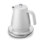 - 商品コード KBY1210J-W 商品名 デロンギ エクレティカ 温度設定機能付き電気ケトル 色 ウィムジカルホワイト 電圧/周波数 AC100V/50-60Hz 消費電力 1200W 外形寸法/重量 幅:220mm 奥行:200mm 高さ:230mm (本体+ベース) 保証期間 1年【毎日が、きっと輝く。】デザイン性と機能性を兼ね備えた電気ケトル 古代ギリシャ語で「選び出す」という意味を持つエクレティカ。それぞれの飲み物に最適な温度や操作音を選べ、使いやすさを追求。ステンレスにマット塗装を施した高級感と重厚感のあるイタリアンデザインで毎日を彩ります。 9段階の温度設定と20分の保温機能 温度は40~100℃までの9段階から設定が可能。白湯や玉露、紅茶やハーブティーまで、様々な茶葉に最適な温度で淹れることができます。また、細やかな温度設定で様々な料理シーンでも活躍。茶器や茶葉の準備中に便利な保温機能も20分*搭載しているので落ち着いて準備ができます。*100℃設定時は除く 選べる4段階の音量設定 沸騰を知らせるビープ音や操作音は大/中/小/オフの4段階から選択可能。早朝や深夜など、音量が気になる時間帯でも気にせず使用できます。 タッチパネル式ディスプレイ 鏡面仕上げで凹凸のないタッチパネル式ディスプレイを採用。ライトが点灯し見やすいだけでなく、スタイリッシュでお手入れも簡単。直感操作できるシンプルでストレスフリーな使い心地です。 360度どこからでも設置 ケトル本体は360度どこからでも電源ベースに設置可能。ストレスを感じることなくお使いいただけます。 取り外し可能なフィルター お手入れも簡単。取り外し可能なフィルターで異物の混入を防ぎます。 見やすい水量計 取っ手側には目盛の付いた水量計があり、注水量が一目で確認できます。 人間工学に基づいたデザイン 持ち上げや注ぎやすさを考慮した、安定感のある掴みやすいデザインの取っ手。満水時でも安定して注ぐことができます。 自動電源オフ、空焚き防止機能付き ケトル内が空または水が少ない状態になると、自動的に電源が切れて空焚きを防止します。また、ケトルを使用しないときは、電源コードをホルダーに巻き付けられます。