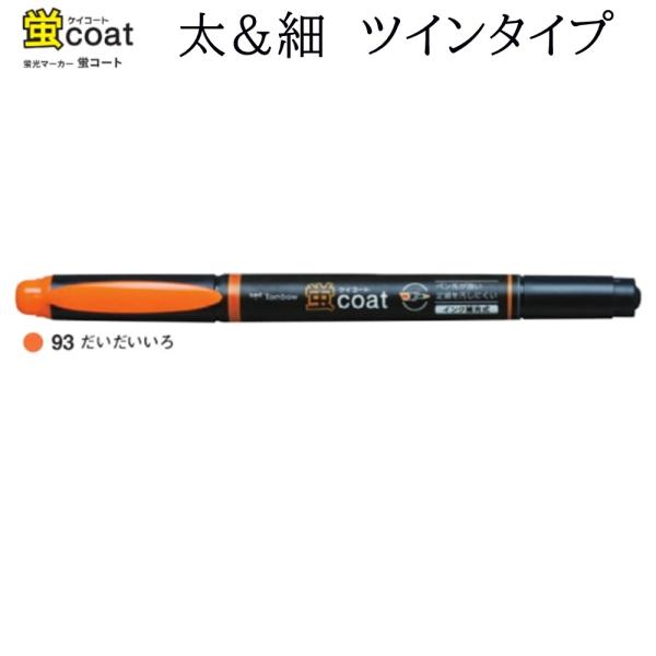 - ★Tombow 蛍コート ツインタイプ■メーカー:トンボ鉛筆■品番:WA-TC93■インク色:橙■太字(筆記幅約3.8mm)&細字(筆記幅:約0.5mm)■ペン全長:141mm■受注単位:1本★インクの補充は「蛍コートチャジャー」で。