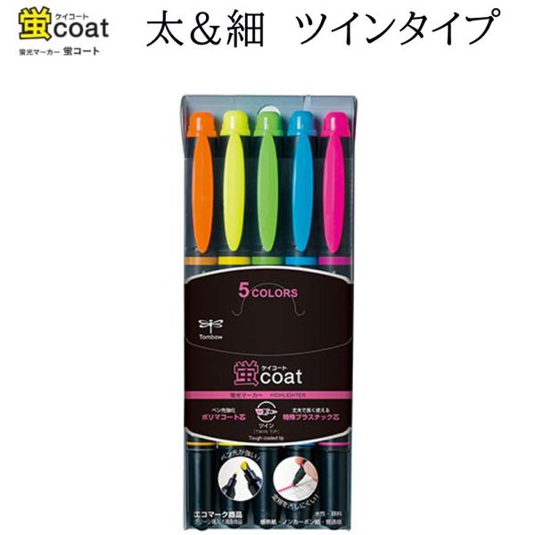 - ★Tombow 蛍コート ツインタイプ★5色セット■メーカー:トンボ鉛筆■品番:WA-TC5C■5色セット:桃・黄・空・黄緑・橙■太字(筆記幅約3.8mm)&細字(筆記幅:約0.5mm)■ペン全長:141mm■受注単位:1セット★インクの補充は「蛍コートチャジャー」で。