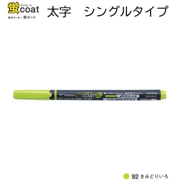 - ★Tombow 蛍コート80 シングルタイプ■メーカー:トンボ鉛筆■品番:WA-SC92■インク色:黄緑■太字(筆記幅約3.8mm)■ペン全長:141mm■受注単位:1本★インクの補充は「蛍コートチャジャー」で。