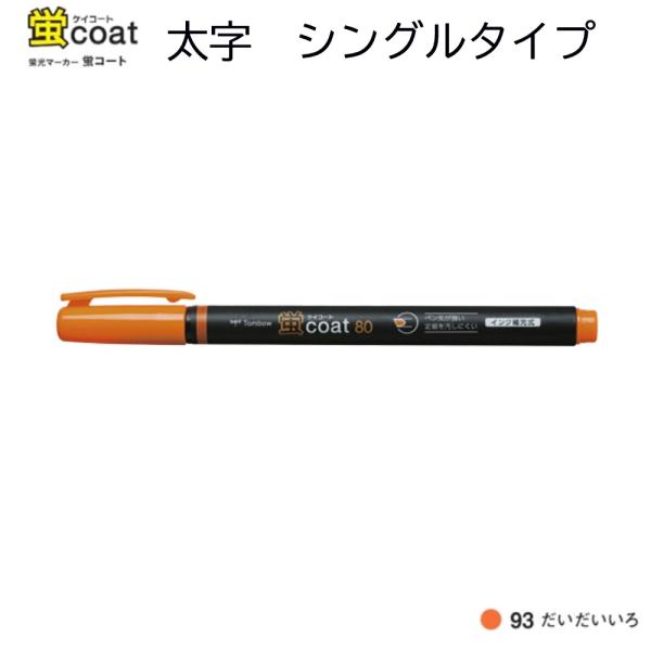 - ★Tombow 蛍コート80 シングルタイプ■メーカー:トンボ鉛筆■品番:WA-SC93■インク色:橙■太字(筆記幅約3.8mm)■ペン全長:141mm■受注単位:1本★インクの補充は「蛍コートチャジャー」で。