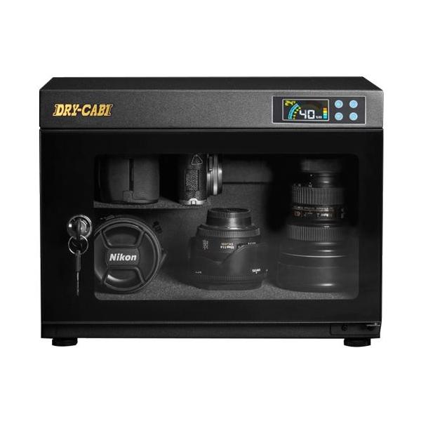 - [注意事項] こちらの商品は、ご入金確認後にメーカーからお客様へ直接お届け致します。 お支払方法は前払いをお選びください。(代金引換不可) また、配送の都合上、他の商品との同梱はお受けする事ができません。 代金引換でご注文された場合、他の商品と同時にご注文された場合は、ご注文をお取消しさせて頂きます。 [主な特徴] ●マイコン制御による超エコ設計の高性能ペルチェ式ドライユニットを搭載した防湿庫です。 ●本体がコンパクトなペルチェ式は、熱を吸い上げ空気を冷却し、結露させて庫内を除湿します。 ●無音、無振動で寝室などのにも設置可能です。 ●湿度設定機能付きデジタル湿度計は、見やすく管理がしやすいので便利です。 ●コントローラーパネルでON/OFFできる庫内にLEDライトを搭載しました。 ●使いやすい全面ワイドドアーは、密閉性に優れたマグネットパッキン式です。(キーロック付き) [カメラ レンズ 保管庫 防カビ 除湿 キャビネット dry-cabi] [主な仕様] 電源AC:100V キャビネット材質:スチール(粉体塗装 ブラック) 扉:スチール、ガラス、マグネットパッキン 湿度計:デジタル温湿度計(湿度コントローラー付き) ※電池不要 外形寸法(幅W×奥行D×高さH)(mm):380×290×290(足含) 内形寸法(幅W×奥行D×高さH)(mm):378(間口寸法345)×245×240(間口寸法180) 質量:5kg 有効内容量:25L 消費電力:4W 付属品:LED照明、鍵2 メーカー保証期間:1年 [対応機種] カメラ、デジカメ、レンズ、フィルム、テープ、FD、CD、VHS、DVD、メディアカード、光学部品、顕微鏡、望遠鏡、双眼鏡、マイクロフォンなどの長期保管用 収納目安:一眼レフカメラ2-3台