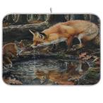 【並行輸入品】Forest Fox Drinks Water Kitchen Dryer Mat for Dishes 18 x 24 Inc
