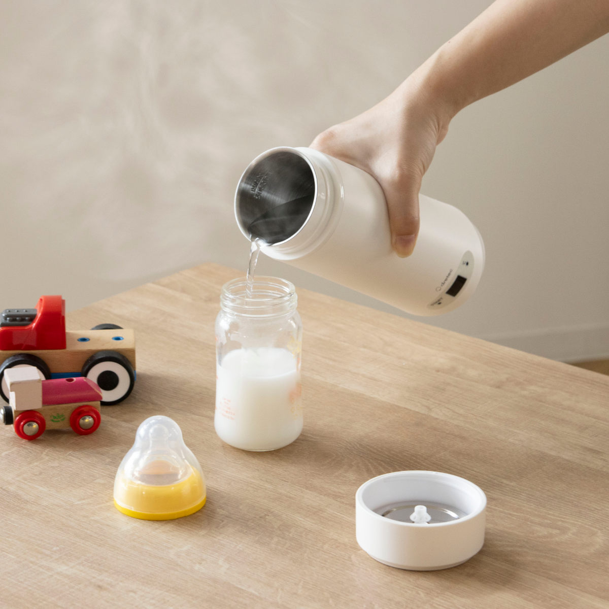 ●お出かけ先でひとり分のお湯が手早く沸かせる、便利な温調ボトルです。