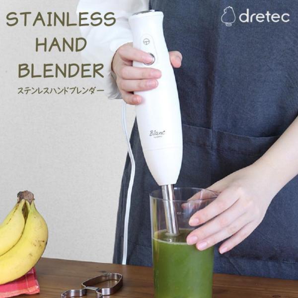 ドリテック ステンレスハンドブレンダー 電動ブレンダー HM-813WT dretec 食洗機対応 1台3役 ハンドブレンダー HM-813