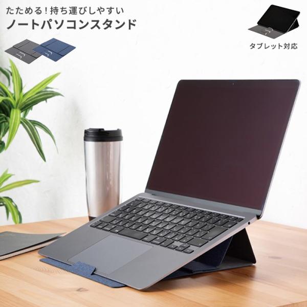 ナカバヤシ 文具 PCスタンド スタンド ノートパソコンスタンド 折り畳み シンプル 人気 軽量 傾斜 台 PC台 高さ調整 角度調整 薄型 シンプル おしゃれ ネイビー グレー iPad ノートパソコン ノートPC - 楽天での商品説明(ルームクリエイト)