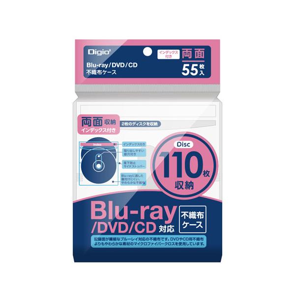 ナカバヤシ Digio2 Blu-ray不織布ケース インデックス付き 両面収納 55枚 ホワイト BD-007-055W