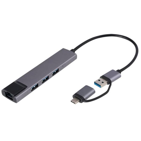 - お店TOP>家電>情報家電>パソコンサプライ>USBハブ(USB2.0対応)>Digio2 USB3.2Gen1 Type-C&A 3ポートアルミハブ LANアダプタ付 UH-C3L373GY (1個)【Digio2 USB3.2Gen1 Type-C&A 3ポートアルミハブ LANアダプタ付 UH-C3L373GYの商品詳細】●Type-CにもType-Aにも挿せるギガビットLAN付きアルミボディの3ポートハブ。●LANポート:通信速度最大1G(1000M)bpsのギガビットEthernet。●USB(A)*3ポート:USBポートを拡張。USBメモリやマウスなど接続。【規格概要】・本体寸法/重量:W117*D27*H13mm/約50g・USB規格:ver.3.2Gen1(3.1Gen1/3.0)・インターフェース:アップストリーム(PC側)/USB Type-C(オス) or A(オス)、ダウンストリーム(接続機器)/Type-A(メス)*3、LAN・対応機種:USBポートが正常に動作するパソコン・対応OS:Windows11、10/ChromeOS/macOS10.12以降・ケーブル長:約20cm・電圧/最大供給電流:5V 720mA・最大転送速度:5Gbps(理論値)・電源:バスパワー・LAN規格:IEEE802.3(10BASE-T)/IEEE802.3u(100BASE-T*)/IEEE802.3ab(1000BASE-T)/IEEE802.3*(Flow Control)・LAN通信速度:10/100/1000Mbps(理論値)・LANコネクタ形状:RJ-45(Auto MDI/MDI-*)*1ポート、Auto-Negotiation対応・適合LANケーブル:カテゴリー5e以上のLANケーブル(1000BASE-T)、カテゴリー5以上のLANケーブル(100BASE-T*)・付属品:取扱説明書【原産国】中国【発売元、製造元、輸入元又は販売元】ナカバヤシリニューアルに伴い、パッケージ・内容等予告なく変更する場合がございます。予めご了承ください。ナカバヤシ540-0031 大阪府大阪市中央区北浜東1-200570-666-365広告文責:楽天グループ株式会社電話:050-5577-5043[情報家電]