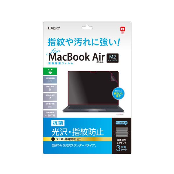 ナカバヤシ Digio2 MacBook Air M2チップ搭載モデル用 液晶保護フィルム 光沢指紋防止タイプ SF-MBA1302FLS