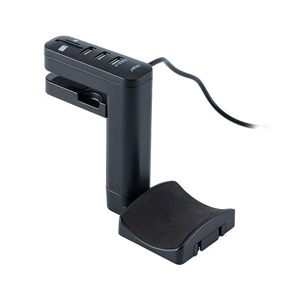 ナカバヤシ HPH-002BK USB2.0 3ポートハブ+SD microSDカードリーダー ライター付きヘッドホンフック