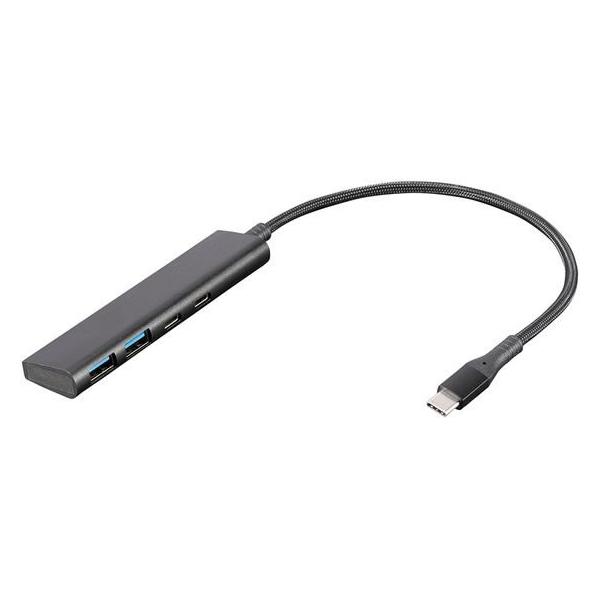 - 【商品説明】Type−Cポートを2つ、Aポートを2つ、拡張します。シャープでスリム。放熱性に優れ、強靭で美しいアルミ筐体。屈曲に強いメッシュケーブル。ケーブル長20cm。ノートPC、タブレット型PC、どちらでもお使いいただけます。[ご使用上の注意]本製品をUSB充電器に接続して使用しないでくだい。PD(PowerDelivery)非対応。Type−CポートはAlternateModeに対応していません。【仕様】●カラー:ブラック●サイズ:幅104×奥行25×高さ11mm●重量:約44g●ケーブル長:約20cm●インターフェースアップストリーム(PC側):USB Type−Cオス●インターフェースダウンストリーム(接続機器側):Type−Cメス×2/A メス×2●USB規格:USB仕様 Ver.3.2 Gen1(USB3.1/3.0)●通信速度:5Gbps(理論値)●電源:バスパワー●供給電流:最大5V/720mA●対応OS:Windows 11・10・8.1・8、Mac OS 10.12以降、ChromeOS、iPadOS 13.4以降、Android8以降 <ジェットプライス>