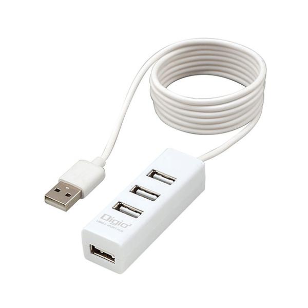 ナカバヤシ USB2.0 4ポートハブ 120cm ホワイト UH-2614W