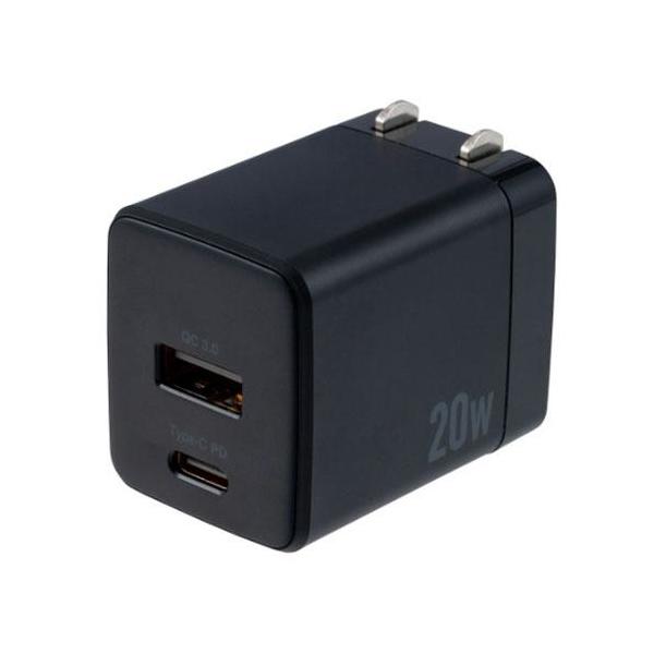 ナカバヤシ JYU-ACU011BK ブラック 20W PD対応 USB AC充電器