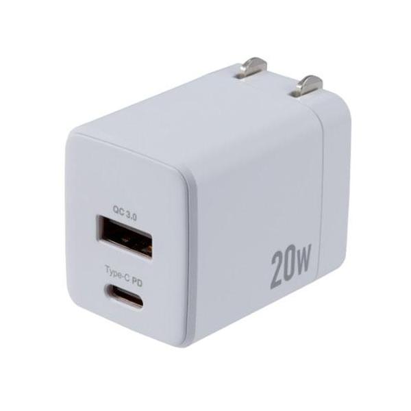 ナカバヤシ JYU-ACU011W ホワイト 20W PD対応 USB AC充電器