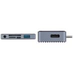 - ■商品内容●Digio2 USB3.2Gen1 Type-C スケルトン 2ポートハブ PD対応 3.5mm/4極付 グレー COM-C3SD163GY●タブレットなどに直接挿せるケーブルレスのType-C接続2ポートコンボハブ。回路が見えるスケルトンタイプ。<PC側>[Type-C]…Type-Cポート搭載のPC・タブレット・スマホなどへ接続。※スマホ・タブレットに保護ケースをご使用の場合、ケースの厚みによってはコネクタが完全に挿さらない場合がありますのでご注意ください。<接続器側>[Type-A(USB3.2Gen1)]…Type-A接続機器など。[Type-C(USB2.0)]…Type-C接続機器など。[カードリーダー/ライター]…SD/microSD対応。1カード認識タイプ。※複数のカードを挿しても認識されるのは1カードのみです。[3.5mm・4極ミニプラグ]…イヤホン・ヘッドフォン・ヘッドセットなど。[Type-C(USB PD充電専用)]…Type-C充電器。■商品スペック■本体寸法/重量:W70xD27xH12mm/約27g■USB規格:Ver.3.2Gen1(3.1Gen1/3.0)、2.0■インターフェース:[アップストリーム(PC側)]=Type-C(オス)、[ダウンストリーム(接続器側)]=Type-Aメス(USB3.2Gen1)x1/Type-Cメス(USB2.0)x1※Alternate Modeには対応していません。/Type-Cメス(PD)x1■対応機種:Type-Cポートが正常に動作するパソコン・スマホ・タブレット■対応OS:Windows11/10、macOS10.15以降、ChromeOS、iPadOS16以降/iOS17以降※Type-C搭載機器。■電圧/最大供給電流:5V 720mA(USB3.2Gen1ポート)■最大転送速度:5Gbps(理論値USB3.2Gen1ポート)■PD最大電力:100W※電力の一部を製品内部で消費するため、100Wの充電器に接続した場合95W程度の給電になります。■電源:バスパワー■対応メディア:SD(HC,XC)/microSD(HC,XC)■対応スピードクラス:〜class10■オーディオ出力:Φ3.5mm4極ジャック、USB2.0準拠(USB Audio Class v1.0)、DAC内蔵■送料・配送についての注意事項●本商品の出荷目安は【1 - 6営業日 ※土日・祝除く】となります。●お取り寄せ商品のため、稀にご注文入れ違い等により欠品・遅延となる場合がございます。●本商品は仕入元より配送となるため、沖縄・離島への配送はできません。[ COM-C3SD163GY ]