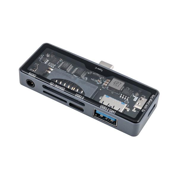 ナカバヤシ Digio2 USB3.2Gen1 Type-C スケルトン 2ポートハブ PD対応 3.5mm/4極付 グレー COM-C3SD163GY