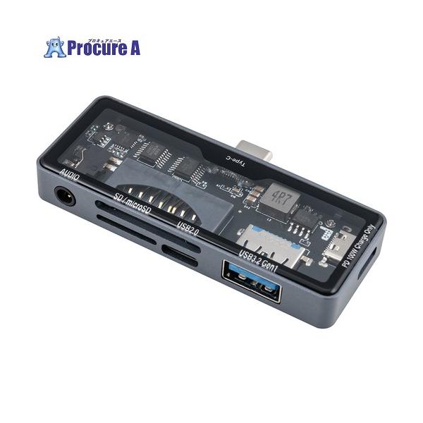 ナカバヤシ 2ポートコンボハブ PD対応 USB3.2Gen1 Type-Cスケルトン(3.5mm 4極付き) ■▼705-4857 COM-C3SD163GY 1個