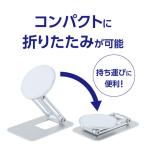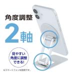 - ■サイズ・色違い・関連商品■ブラック■シルバー【当ページ】■商品内容●MCO マグカ MagSafeスタンド シルバー SST-22-SL●マグネット式ホルダーでスマートフォンの着脱が簡単にできます。縦置き、横置きでスマートフォンを設置できます。●スマートフォンでの動画/映画の閲覧に最適なスタンドです。ワイヤレスキーボード(別売)と組み合わせての入力作業などにも最適です。●複数の回転軸を搭載することで、より自由な角度調整、位置調整ができます。自分の好きな最適な角度で、動画の視聴、ゲームなどを行うことができるほか、デスク上に置いて操作しやすい角度に調節しての充電などが可能です。付属の可動調整工具を使えば、軸をしっかり固定することができます。*本製品に充電機能はありません。充電には別途充電器(別売)が必要です。●スタンド本体の可動部を折りたたむことで、コンパクトに収納が可能です。軽いアルミ合金採用で出張や旅行時の持ち運びに最適です。■商品スペック■サイズ:使用時:W60xH122×D96mm 折りたたみ時:W60×H96×D17(突起部除く)■重量:約82g■MagSafe対応iPhone1615/14/13/12シリーズ■材質:アルミ合金、シリコン■付属品:可動調節工具■送料・配送についての注意事項●本商品の出荷目安は【7 - 9営業日 ※土日・祝除く】となります。●お取り寄せ商品のため、稀にご注文入れ違い等により欠品・遅延となる場合がございます。●本商品は仕入元より配送となるため、沖縄・離島への配送はできません。【 SST-22-SL 】