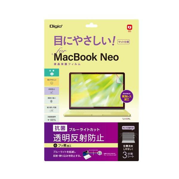 ナカバヤシ SF-MBN1301FLGBC MacBook Neo用フィルム ブルーライトカット反射防止 3分割離型シート 気泡レス加工