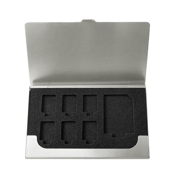 - ■アルミ製の丈夫なメモリーカードケース■ホルダーに静電気防止クッションを採用しホコリや静電気からメモリーカードを守ります。■軽くて持ち運びに便利です■本体寸法/重量:約W94×D60×H5mm/約19g■収納枚数:SDカード1枚、microSDカード6枚