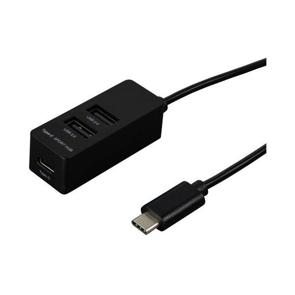 ナカバヤシ UH-C2463BK ブラック Type-C USB2.0 3ポートハブ 120cm
