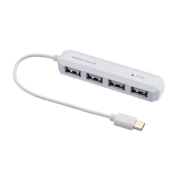 ナカバヤシ USB2.0/Type-C/4ポートハブ/15cm/ホワイト UH-C2474W