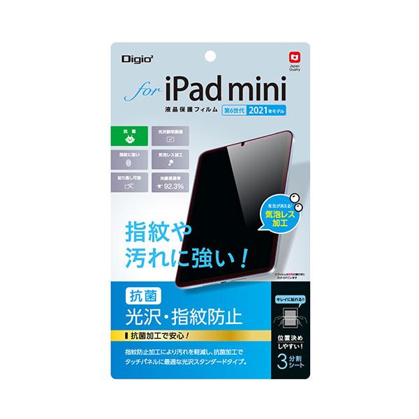 指紋や汚れに強い!■iPad mini(第6世代)用■光沢・指紋防止タイプ指紋防止加工により汚れを軽減。抗菌加工でタッチパネルに最適な高光沢スタンダードタイプ。■気泡レス加工時間経過とともに気泡分散し目立たなくなります。■光線透過率92.3%■位置決めしやすい3分割離型シート