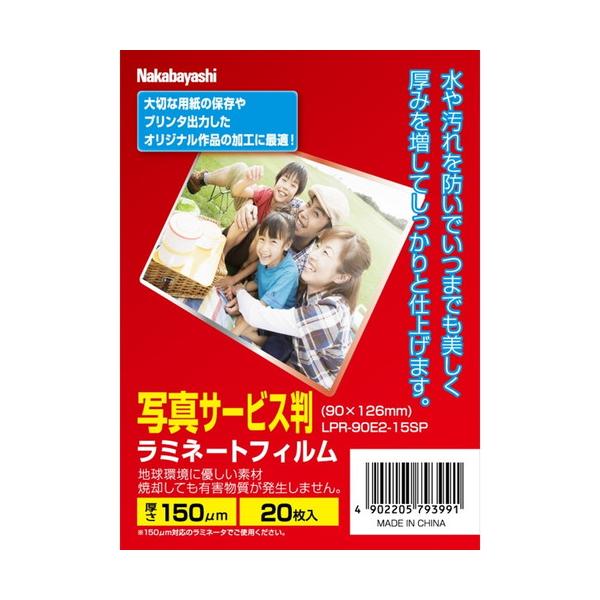 ナカバヤシ ラミネートフィルムE2 150ミクロン20枚写真サービス判 LPR-90E2-15SP