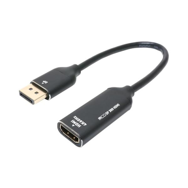 - DisplayPortをHDMIに変換 DisplayPortを搭載した端末から、HDMIを搭載したテレビやモニターなどの大画面へ出力できるアダプタです。 お手持ちのHDMIケーブルを活用したい場合などにおすすめです。 4K(3840×2160)/60Hzの解像度に対応 4K/60Hz出力に対応し、高解像度をストレスなく使用することができます。 HDCP2.2対応 4K放送の視聴に必要な著作権保護規格であるHDCP2.2に対応。 音声出力対応 映像に加えて音声の出力にも対応し、複数のケーブルを用意する必要がありません。 環境にやさしいRoHS指令対応(10物質) RoHS指令は、電子・電気機器における特定有害物質の使用制限についての欧州による指令です。 人や環境に有害な物質の含有基準をクリアした、安全な製品です。 製品仕様 コネクタ DisplayPort-HDMI 最大対応解像度 4K(3840×2160)/60Hz ※4K/60Hzの映像を出力する場合は、Premium HDMIケーブルをお使いください。 対応規格 DisplayPort1.2/HDMI2.0 HDCP 1.4/2.2 ケーブル長 約0.15m(コネクタ含まず) ケーブル径 約5.0mm 対応ケーブル長 2mまでを推奨 対応機種 ・DisplayPortを搭載したPC ・HDMIを搭載したモニター ご使用上の注意 本製品の信号方向はDisplayPort側からHDMI側になります。逆方向へ信号を流すことはできません。 接続する機器やケーブルの形状によっては正常にお取り付けできない場合があります。 本製品を取り外す際はコネクタを持って外してください。 本製品を使用中に発生したデータやプログラムの損失や機器の故障等につきましては一切の保証ができかねます。 本製品の使用による他の機器の故障、不具合につきましては、弊社は一切の責任を負いかねます。 本製品の製造には万全を期しておりますが、万が一不具合品の場合は直ちに交換をさせて頂きます。それ以上の責任はご容赦頂きますようお願い致します。 本製品の保証は日本国内のみで有効です。This warranty is valid only in Japan.