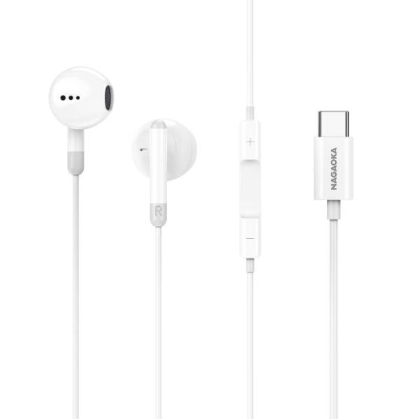 NAGAOKA NTYPEC03 ホワイト【NTYPEC03WH】有線イヤホン イヤホン 有線 インナーイヤー型 マイク付き リモコン付き USB Type-C スマホ直挿し DAC搭載 ナガオカ
