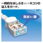 ※1:水が飛散した時、コンセント内部への侵入を防ぐ扉+パッキンの防水性能は当社独自の散水試験条件(水量:10L/分、距離:50cm、時間:30秒)で評価しています。