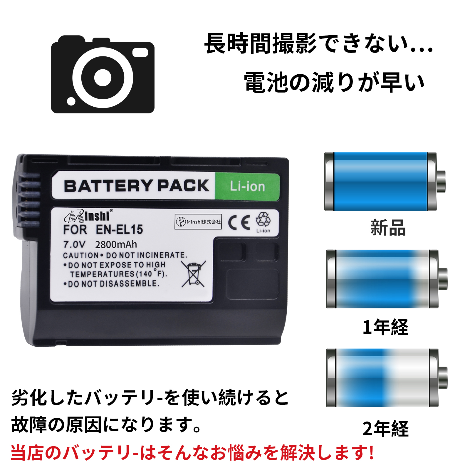 新品 Nikon D7500 互換バッテリー 2800mAh 7V 対応用 1年保証 高性能 PSE認証 互換バッテリパック YIV