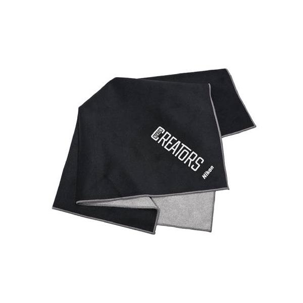 Nikon CREATORSのロゴ入りイージーラッパー。カメラやレンズなどの形状が異なる機材を包んで持ち運ぶのに便利で、生地の間に防水シートを使用している防滴タイプのクロスで突然の雨などにも安心してお使いいただけます。