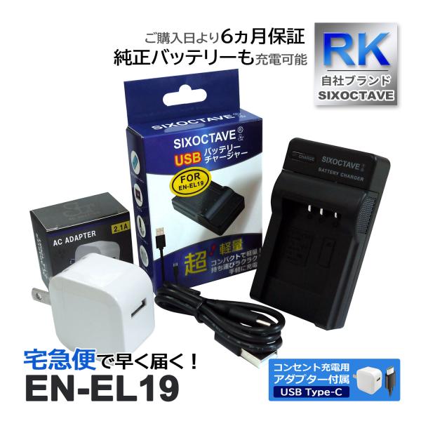 【互換品】 EN-EL19 NP-BJ1 ニコン 互換 USB 充電器 【コンセント充電用 ACアダプター付き】 2点セット 純正バッテリー 充電可能 (a2.1) Coolpix