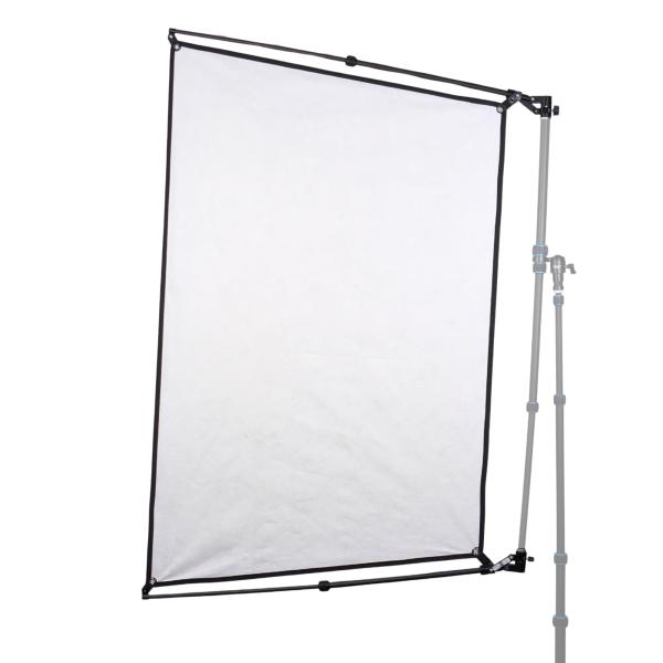 「棒状にたためてコンパクト。棒レフ、誕生。」 カーボンのしなりを活かし、3本のポールで支える新構造の軽量レフ板。棒状に短くたため、持ち運びがスマート。 布は4点フックで素早く交換でき、破損や汚れも、布だけの交換でOK。
