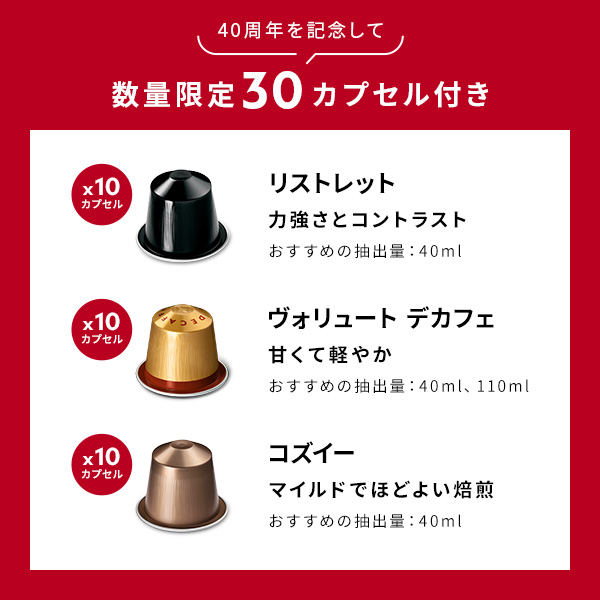 ■数量限定:コーヒー30杯分プレゼント 公式 ネスプレッソ オリジナル カプセル式コーヒーメーカー エッセンサ ミニ ピアノブラック D 40周年セット D30BK