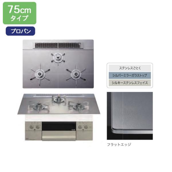 【N3WU4PWASKSTESC】ノーリツ ビルトインコンロ Orche(オルシェ) シルバーミラー レンジフード連動 75cm幅/プロパン