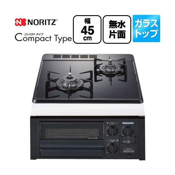 【3年保証】Compact Type(コンパクトタイプ) 45cmビルトインコンロ 幅45cm ノーリツ N2G24KSPS-13A 無水片面焼グリル ブラックガラストップ 【都市ガス】
