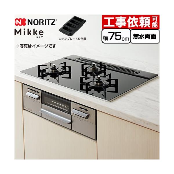 Mikke ミッケ オートタイプ ビルトインコンロ 幅75cm ノーリツ N3WV7RWAP1SIC-13A ブラックガラストップ 【都市ガス】