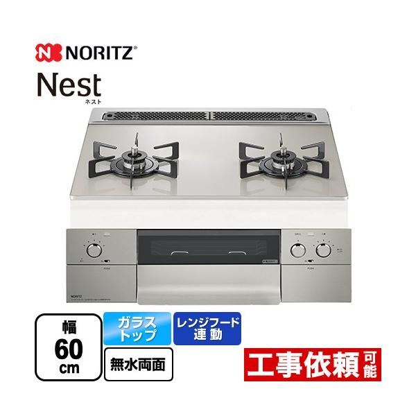 Nest ネスト 2口タイプ ビルトインコンロ 幅60cm ノーリツ N2WU7PWAP2STE-13A ダブル高火力 ムーンシルバーガラストップ 【都市ガス】