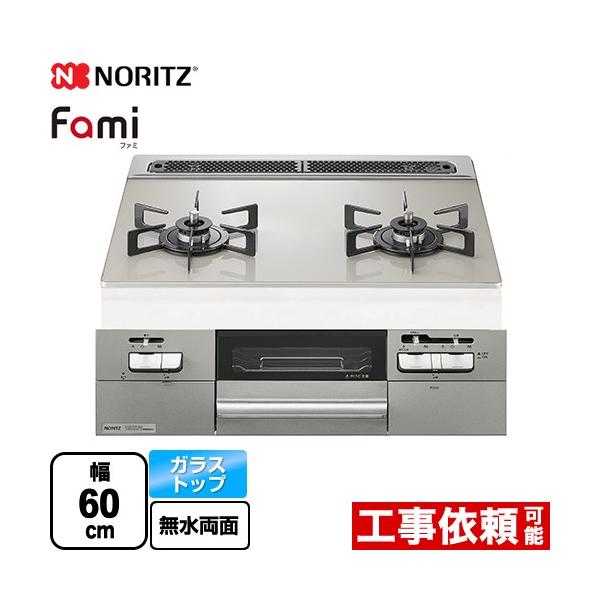 Fami ファミ 2口タイプ ビルトインコンロ 幅60cm ノーリツ N2WV8RWTP2SI-13A ダブル高火力 ムーンシルバーガラストップ 【都市ガス】 爆買