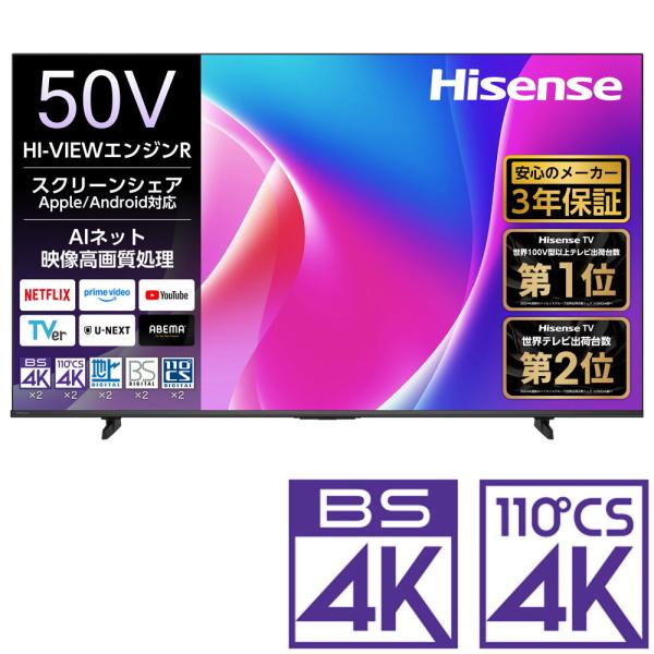 - 在庫状況:在庫あり/4日〜7日で出荷/2025年10月 発売/【ご購入前に必ずご確認下さい】■離島、山間部及び一部の遠隔地はご注文をお受けできません。■B〜Dエリアはお届けまでに追加の日数をいただく場合があります。■ご注文はお1人様1台までとさせていただきます。複数台のご購入はご遠慮ください。■転売目的や同一住所で名前を変えてのご注文など、同一と思われるお客様からの複数のご注文は、取り消しさせていただく場合がございますのでご了承ください。◆人気VODが最初から内蔵◆4K液晶スマートテレビ/[50C55R]