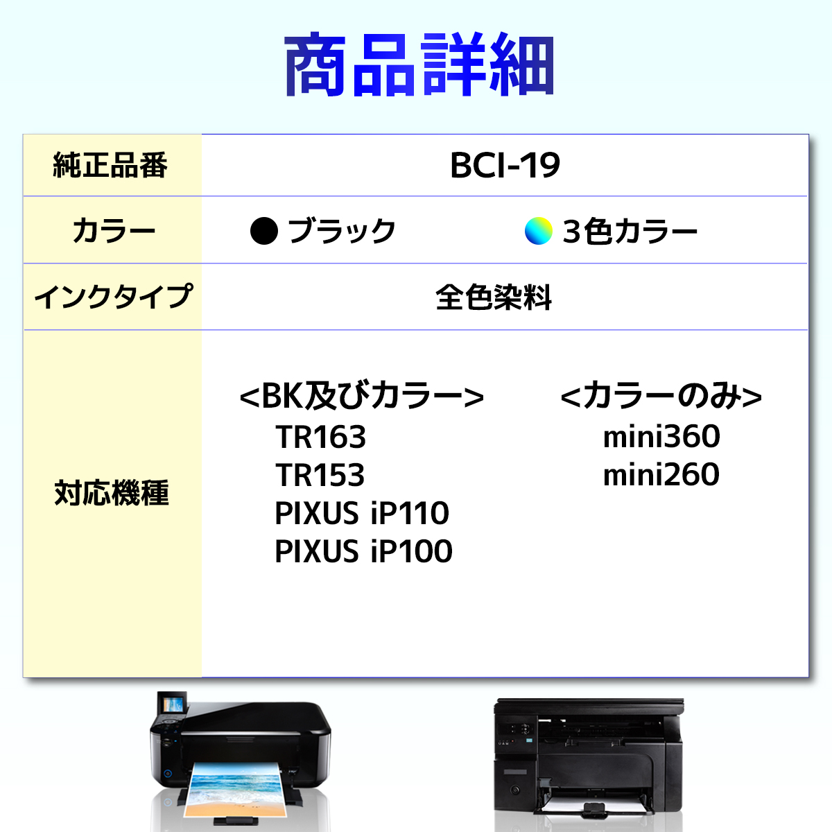 Canon キャノン BCI-19 対応の互換インクカートリッジです。