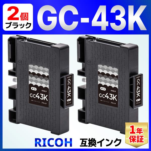 【互換品】GC43 GC43K SG 3300 SG 2300 Mサイズ 顔料 ブラック 2個 リコー RICOH 互換インクカートリッジ