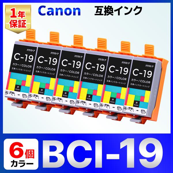【互換品】BCI-19 互換 インク カートリッジ PIXUS iP110 iP100 TR153 TR163 Canon キャノン カラー6個