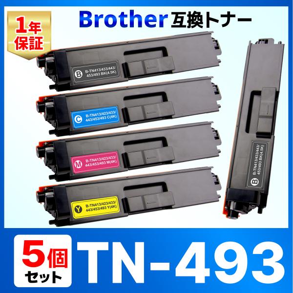 【互換品】TN-493 TN-493BK TN-493C TN-493M TN-493Y HL-L9310CDW HL-L8360CDW MFC-L9570CDW MFC-L8610CDW 互換トナーカートリッジ ブラザー brother 5個