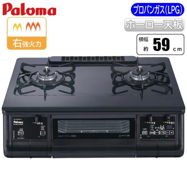 パロマ PA 380WA R LPG エブリシェフシリーズ ブラック 右強火力 プロパン LPG 据置型 2口 両面グリル ラ クックグラン対応